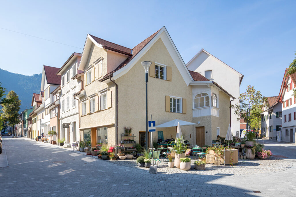 Dieser kaufte einzelne sanierungsbedürftige Häuser, machte die historische Bausubstanz in Zusammenarbeit mit dem Denkmalschutz wieder nutzbar – nach und nach – und finanziert durch ein eigens entwickeltes Investorenmodell, das Sanierung und Einzelhandel zusammendenkt. Investiert in die Belebung der Innenstadt haben auch zahlreiche alteingesessene Betriebe, wie etwa „Weirather Uhren-Schmuck-Optik“, „Greber hörensehen“ oder der „Landgasthof Hirschen“ – sie alle glaubten an den Erfolg der Revitalisierung.