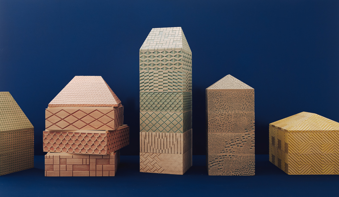 Kai Linke war besonders vom umfangreichen Archiv der Schnitzstube angetan. „Es hat mich gereizt, die vielfältigen Muster aus dem Stadlhofer-Archiv in neuem Licht zu zeigen“, erklärt der Designer. Daraus entstand die Idee der „Patterned Houses“ – stapelbare Kisten aus Lindenholz, die mit ihren vier Außenwänden und Dachflächen wie kleine Musterhäuser wirken. Jede Kiste ist einer anderen Schnitztechnik oder ornamentalen Sprache gewidmet. „Von mir neu skaliert, geschichtet und neu arrangiert, erzählt jedes Haus eine Geschichte. Übereinandergestapelt entstehen kleine Städte – symbolisch, aber auch als Spiegel dafür, wie Gesellschaft aufgebaut ist: Schicht für Schicht, Einfluss für Einfluss, Hand in Hand.“ Jede Kiste wurde nach dem Schnitzen mit Wachsbeize und Aquarellfarbe behandelt und anschließend mit Klarlack versiegelt. Durch die Kombination der Farben und Muster wirken die Häuser tiefgründig und facettenreich – eine direkte Spiegelung gesellschaftlicher Vielfalt. Gleichzeitig erlaubt die Materialität, dass die handwerkliche Präzision voll zur Geltung kommt.