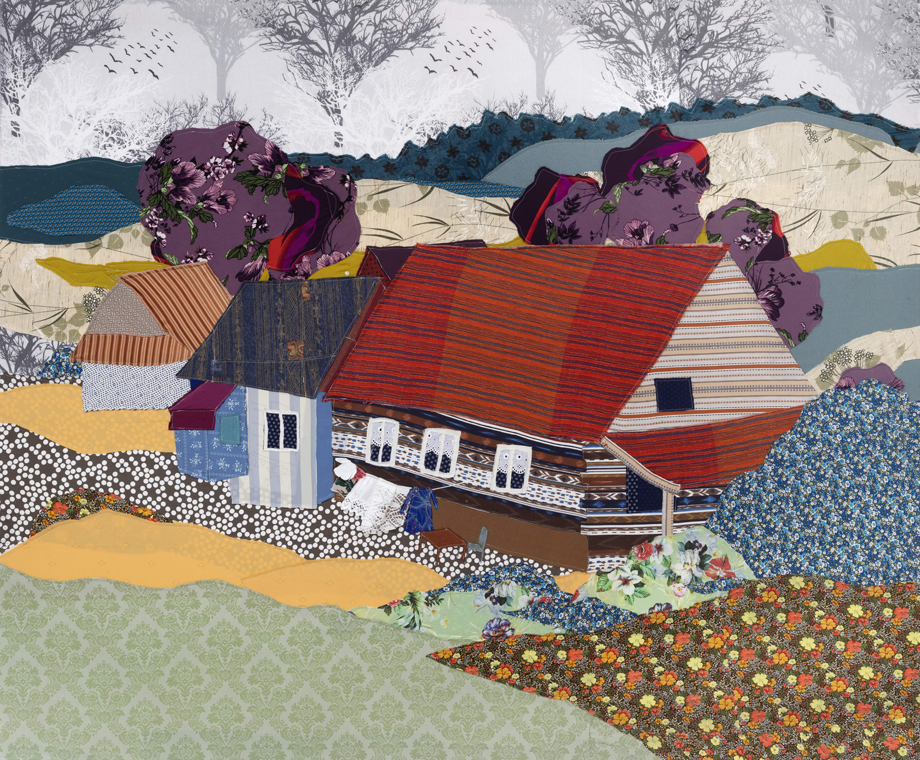Indem die Romnja-Gemeinschaft ihre eigenen Erzählungen zurückerobert, bricht sie mit den von Teilen der Gesellschaft auf sie projizierten jahrhundertealten Fremdbildern. Die Technik der Stoffcollage knüpft an die Romnja-Handwerkskunst an. Doch Mirga-Tas’ textile Kunst ist weit mehr als eine Hommage an traditionelle Frauenarbeit. Sie erhebt das Nähen in den Rang einer politischen Praxis. In einem Bild findet sich ein Selbstporträt, das sie im Freien gemeinsam mit anderen Frauen beim Nähen zeigt. Diese Frauenfiguren sind nicht passive Akteurinnen, sondern Protagonistinnen ihres eigenen Lebens. Arbeit erscheint in ihrer Kunst nicht als Last, sondern als Quelle von Identität und Gemeinschaft.