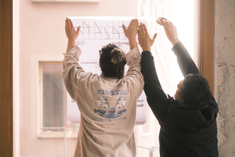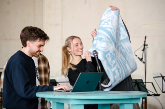 Der „Poolbar Generator“ ist zeitlich stets im Februar angesiedelt. Den Auftakt bildet ein Lokalaugenschein am Festivalgelände, gefolgt von einer Einführung in die Projekttage und einem ersten Kennenlernen – heuer im Speeddating-Format. Anschließend geht es an die Arbeit. Als Konstanten seit der Gründung des Generators im Jahr 2014 gelten die Labore „Architektur“ und „Grafik“. Sie prägen das Festival bis heute maßgeblich. Im Laufe der Jahre sind weitere Arbeitskollektive hinzugekommen, darunter „Lichtkunst“, „Produktdesign“, „Mural Art“, „Sprache“ und „Musik“. Ideen werden gesponnen, Konzepte ent- und manchmal auch wieder verworfen, erste Modelle bzw. Prototypen entstehen. Wo’s Sinn macht, auch labor-übergreifend: Design und Grafik finden Anknüpfungspunkte in der Sprache, Lichtkunst trifft auf Architektur. Umso wichtiger ist eine funktionierende Abstimmungskultur – ebenso wie eine Projektleitung, die als zentrale Anlaufstelle fungiert. Hier kommt Lilian Furrer (27), von Beruf Industriedesignerin und Restauratorin, ins Spiel. Gemeinsam mit ihren Kolleginnen Lisa Sophie Bell und Luca Celine Müller hält sie den Rahmen, sie koordiniert und moderiert, erfüllt Wünsche und sorgt dafür, dass alle gute Arbeitsbedingungen genießen und sich wohlfühlen.