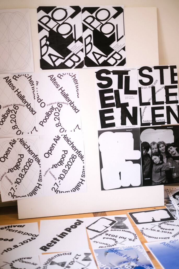 „Es ist toll, so intensiv, so fokussiert und vom Alltag befreit an etwas zu arbeiten“, erzählt eine Berliner Studentin, die beim Laborteam für Produktdesign teilnimmt. „Ja“, bestätigt ihr Kollege, „für uns wird gekocht, fürs ganze Rundherum ist gesorgt. Wenn du so konzentriert an etwas dranbleiben kannst, kommt am Ende mehr raus, als wenn du dich über Wochen nur zwischendurch einem Projekt widmen kannst.“ Die Atmosphäre ist locker, die Stimmung entspannt. Für die insgesamt 40 internationalen Studentinnen und Studenten ist der „Poolbar Generator“ eine einmalige Gelegenheit, um Praxiserfahrung zu sammeln und für neun Tage in engem Austausch mit kreativen Köpfen ebendiese rauchen zu lassen. Wie wird das Poolbar-Programm dieses Jahr visuell kommuniziert? Was soll den Open-Air-Bereich ausmachen, was sprachlich verfangen? Und welche künstlerischen Elemente werden heuer besonders ins Auge fallen? Auf Fragen wie diese werden in sieben spezifischen Laboren gestalterische Antworten generiert. Die Lizenz zum Experimentellen und Spielerischen darf nicht darüber hinwegtäuschen, dass ergebnisorientiert gearbeitet wird. Im Sinne der Kreislaufwirtschaft wird Limitierung zur Leitplanke: „Minimaler materieller Aufwand bei maximalem Output.“ Zum Einsatz soll vor allem Bestandsmaterial kommen.